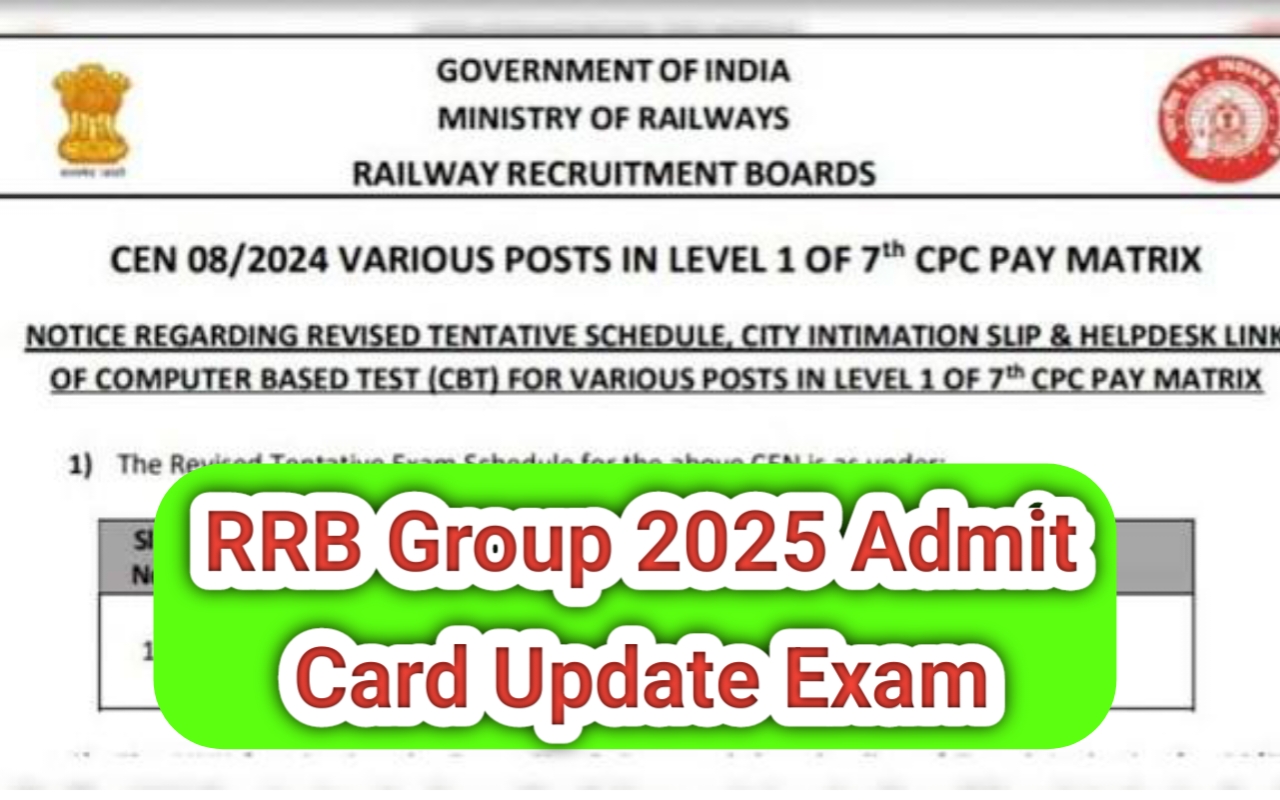 RRB Group 2025 भर्ती परीक्षा का इंतजार कर रहे लाखों उम्मीदवारों के लिए राहत की खबर सामने आई है। रेलवे भर्ती बोर्ड ने Exam City और Exam Date की घोषणा कर दी है। इसके साथ ही Admit Card डाउनलोड लिंक भी जल्द ही सक्रिय किया जाएगा। उम्मीदवार अपने रजिस्ट्रेशन नंबर और जन्मतिथि का उपयोग करके अपने Exam Center और परीक्षा की तिथि चेक कर सकते हैं।
